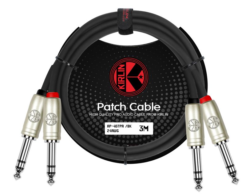 "CABLE KIRLIN DUAL PATCH 24AWG, 2X 1/4"" TRS PLUG A 2X 1/4"" TRS PLUG "AP407PR-3M-BK