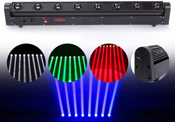 Una barra LED de 8x10W RGBW, con movimiento para crear efectos de luz en eventos dinámicos y escenarios profesionales.