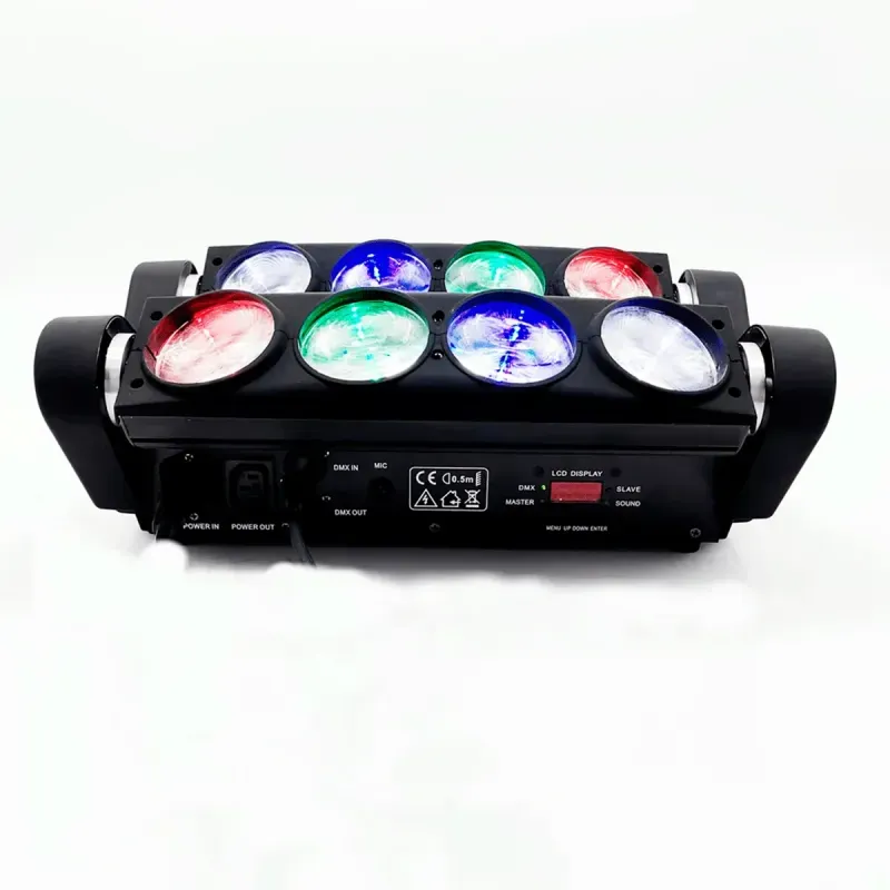 El EURO-MH80 es una doble barra LED que consta de 8 LEDs de 10W con tecnología RGBW 4 en 1. Esta barra es ideal para crear efectos de luz y colores brillantes en eventos dinámicos, con un diseño tipo Spider, que permite una gran versatilidad en el posicionamiento y los efectos. Los LEDs RGBW proporcionan una mezcla de rojo, verde, azul y blanco.