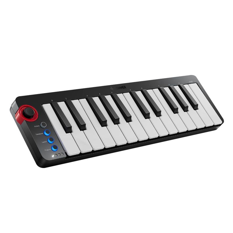 Controlador MIDI USB Donner N-25 con 25 teclas sensibles, portátil y liviano, ideal para producción musical en PC, Mac o móvil. Plug & play.