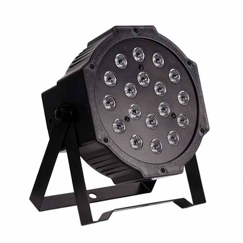 Un PAR LED compacto de 1W con colores RGB (Rojo, Verde, Azul). Es ideal para usar en decoraciones de eventos o pequeños escenarios.