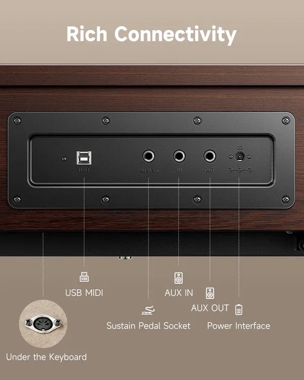 INSTRUMENTOS MUSICALESTECLADOS, PIANOS Y SINTETIZADORESPIANOSDONNER PIANO DIGITAL DOMESTICO OURA R300 DE 88 TECLAS MARRON EC7082