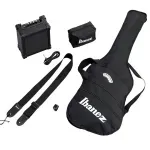 Este pack incluye una guitarra eléctrica con cuerpo de madera de álamo, mástil de arce y diapasón de jatoba. Está equipada con dos pastillas humbucker Infinity, ideales para una amplia gama de estilos musicales. También incluye un amplificador compacto, funda, correa, afinador, púas y cable, lo que lo convierte en un conjunto completo para empezar a tocar.